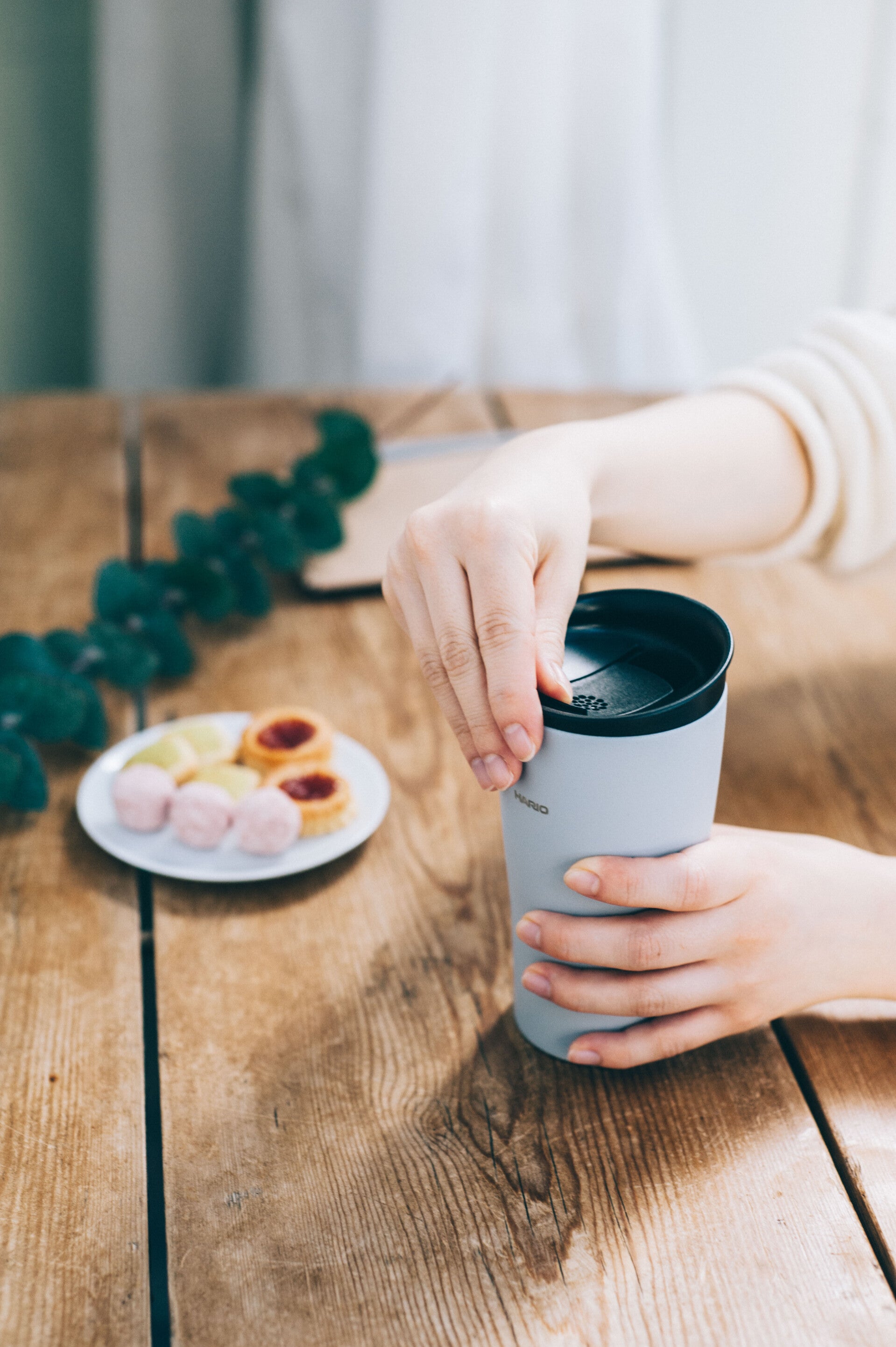 Dankzij het slimme ontwerp heb je geen aparte koffiekan meer nodig. Verwijder simpelweg het deksel en plaats je V60 Dripper rechtstreeks op de beker. Zo loopt je verse pour-over koffie direct in de tumbler, klaar om direct mee te nemen.